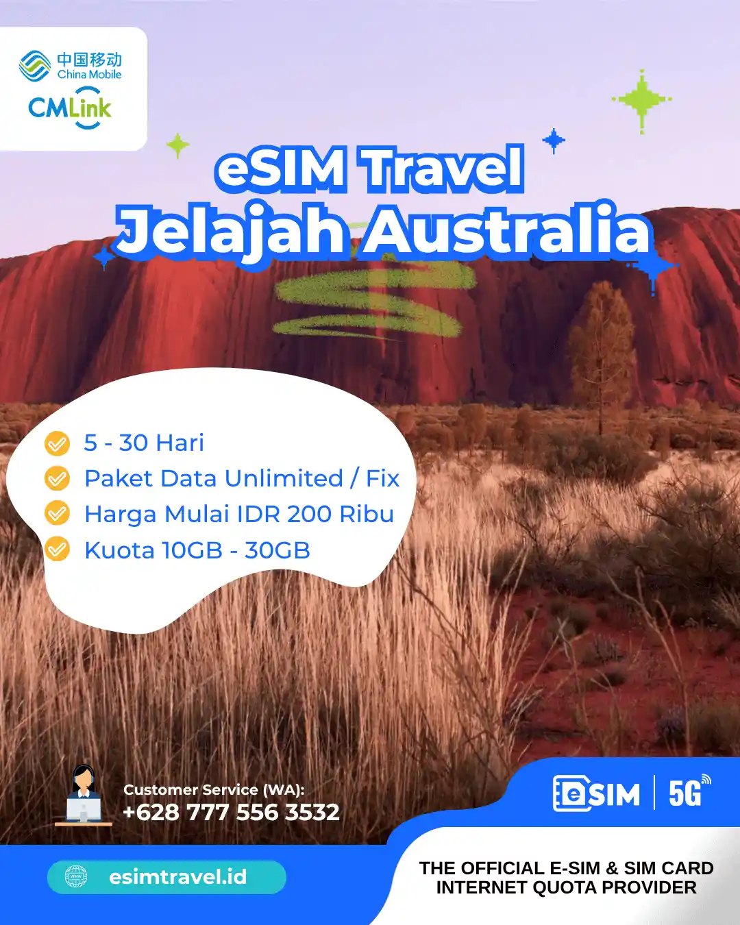 Jangan tunggu sampai tiba di Australia baru mencari kartu SIM lokal. Pesan eSIM Australia dari eSIM Travel sekarang, dan dapatkan QR Code instan yang langsung dikirim ke email Anda. Aktivasi mudah, jaringan cepat, dan dukungan 24 jam siap membuat perjalanan Anda lebih lancar dan nyaman.