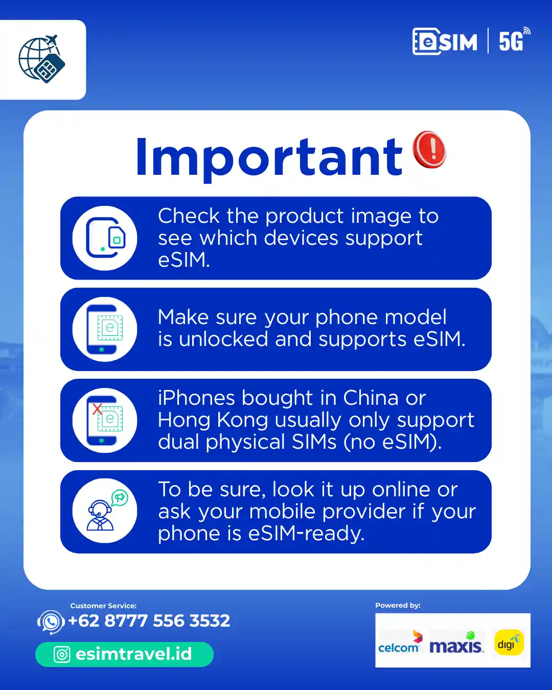 📵 eSIM hanya mendukung data internet (tidak bisa telepon & SMS).
